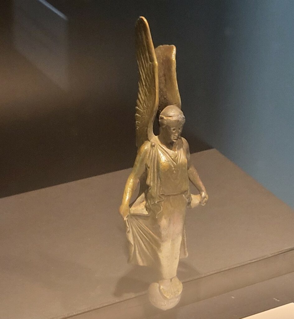 Statuette représentant une victoire, circa -52 à 481, Musée Royal de Mariemont, B.189. Exposition Playmobil, une histoire d’Empires, Waterloo, musée Wellington.
